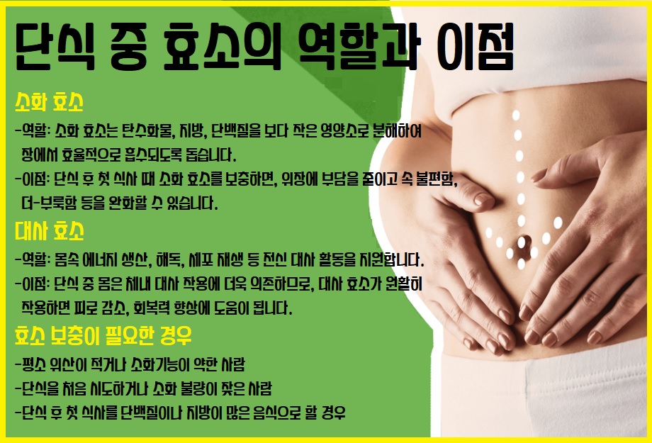 단식 효소는 단식 중 영양 보충과 소화 부담 감소를 돕습니다.